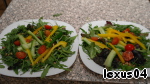 5. Руколу 150 грамм и салатных листьев разных 100 гр не режем, а рвем ручками, чтоб не поплыли, сюда же очень неплохо чуть базилика добавить.