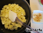 После лука обжариваем картофель, нарезанный на кубики, минут 10.