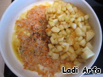 Пока овощи тушатся, занялась рыбным фаршем (у меня был готовый), посолила, слегка поперчила, добавила половину столовой ложки панировочных сухарей и тщательно выбила в тазике.