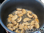 Пока блюдо доходило до готовности, шампиньоны нарезала на пластики и обжарила минуты 3-4.