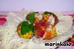 Для приготовления нам нужны следующие продукты. Рыба, кукуруза, гранат, помидор, морковь, петрушка, агар-агар, яйца.
