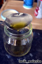 Для него нам нужно: масло оливковое, горчица, уксус, соль, перец и маленькая баночка. -