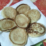 Жарим оладьи. Собственно, масла я практически не лил, так что они скорее пеклись, чем жарились.