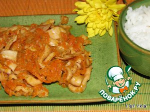 Вкусное, низкокалорийное постное блюдо, в приготовлении которого есть только две трудности: почистить кальмары и набраться терпения во время пребывания этой вкуснятины в духовке