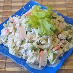 Крабовое мясо - чрезвычайно полезно, как и многие морепродукты. Жаль, но мне доступна лишь его имитация. По-хорошему завидую тем, кому доведется отведать салат с настоящим мясом крабов