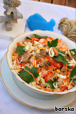 ... во время шторма на берег выносит большое количество моллюсков и морских гадов. И в это мгновение сливаются земля и море! Этот салат объединил в себе обе стихии: землю и море и породил вкусный тандем. Соблюдайте здесь пропорции!!! И поститесь на здоровье!