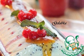 Вырезаем из мусса шарики или вот такие "клецки" (я их вырезали при помощи двух столовых ложек) и подаем с ягодами, мятой или ягодными соусами.