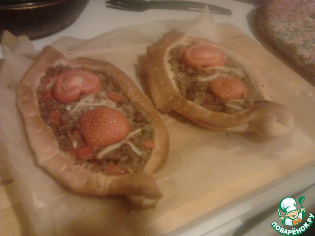 Kimali Pide. Потрясающе вкусная пицца. Мягкое, нежное, просто необыкновенное тесто. Дочка назвала пидэ пиццы-лодочки. На сайте есть рецепт пидэ, но у этого рецепта совершенно другое тесто. Не тесто, а сказка. Рецепт не собиралась выставлять, но так понравился результат, что все-таки рискну. За рецепт спасибо Тане-Shkoda-!