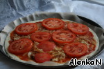 На той же терке режу помидор кружочками и выкладываю поверх лука.