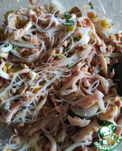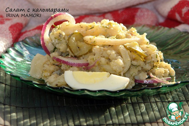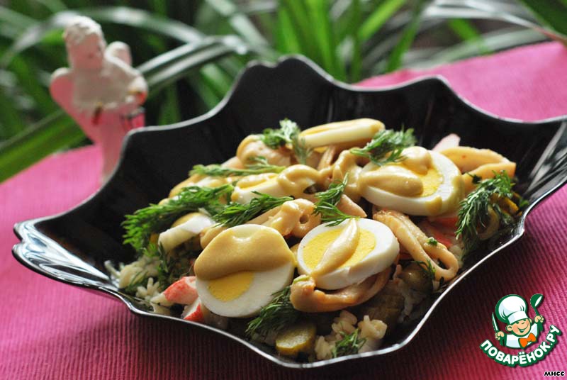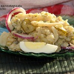 Рецепт «Теплый салат из кальмаров, минтая и орзо»: