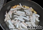 В разогретое масло положить чеснок и имбирь для аромата и обжарить.
