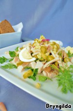 Легкий салат, с нежным вкусом. Его рецепт нашла тоже в книге Европейской кухни и решила попробовать. Сразу оговорюсь, у нас в магазинах я орзо не нашла, но в книге было указано, что можно взять любые мелкие макаронные изделия, я выбрала из твердых сортов пшеницы одного известного производителя.