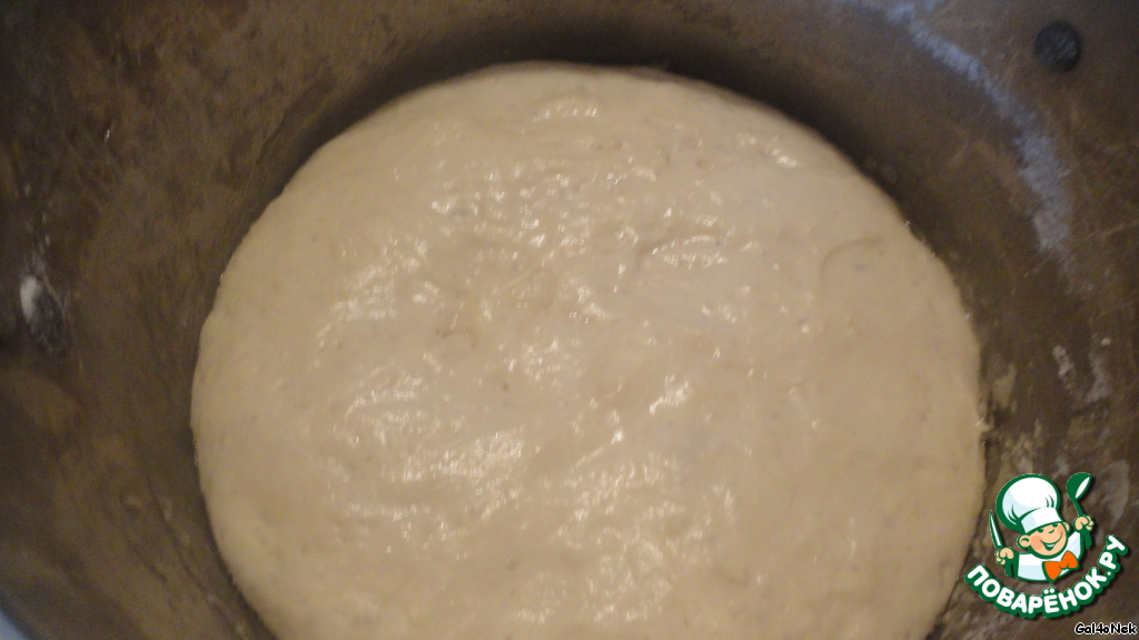 Замесить тесто из муки, воды, соли, сахара, дрожжей. Оставить в теплом месте... |
