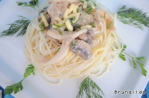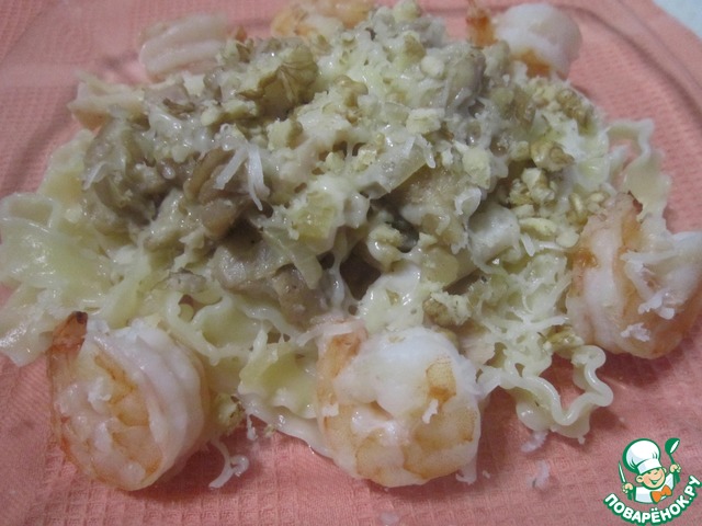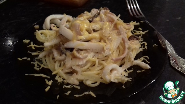 Рецепт «Спагетти с кальмарами в орехово-грибном соусе»: