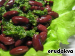 Для этого салата можно использовать любую консервированную фасоль в собственно соку. Я использовала свою уже отваренную красную фасоль.