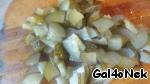 Пока картофель варится, режем мелкими кубиками ялтинский лук. Если нет ялтинского, то можно обычный, но тогда немного его сбрызнуть уксусом, чтобы ушла горечь.