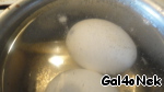 И еще один момент. Считается, что если варить яйца в подсоленной воде, то они не треснут. В этом есть доля правды, но совсем так. Яйца треснуть при нагревании воды могут всегда, но соль способствует сворачиванию белка. Поэтому белок на поверхности трещины быстро затвердевает и не выходит наружу. Так что заливаем яйца холодной водой, хорошо ее солим, доводим до кипения и варим минут 5. -