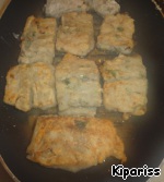 Как рыба замариновалась, обваляем каждый кусочек в муке и пожарим на оливковом масле до золотистой корочки. Недолго, по паре минут с каждой стороны. Выкладываем на тарелку и отставляем.
