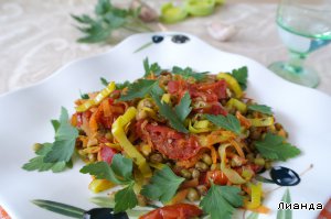 Рецепт «Маш с луком-пореем и вялеными помидорами»: