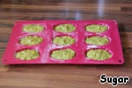Формочки смазать маслом и припудрить мукой(несмотря на то, что у меня силиконовые формочки, я эту операцию делаю, т.к. все равно прилипают:)). Заполнить формочки наполовину, при выпечке мадлены увеличиваются в объеме в два раза.