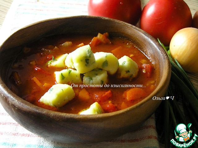 Рецепт «Томатный суп с клецками из зеленого лука»: