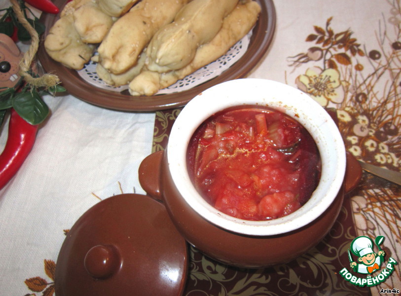 Интересный способ приготовления всеми любимого борща. Суп поразительно вкусный и наваристый, хотя он постный. Именно такой суп получался у меня, когда я готовила в русской печи. Давно забытые ощущения... оказывается, и в городских условиях можно сделать подобное.