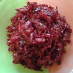 Морковь и свеклу натрем на крупной терке. Не советую измельчать блендером, т. к. получится каша.