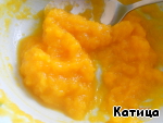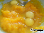 В охлажденное тыквенное пюре добавить яйца, посолить и хорошо перемешать вилкой. -
