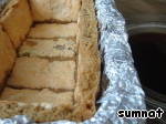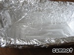 Прямоугольную форму для кекса плотно застелем фольгой или пищевой пленкой. |