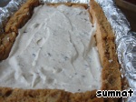 И закрываем оставшимся печеньем. Легонько прижимаем. Накрываем форму фольгой или пленкой и убираем в морозильник на несколько часов. Когда готовила, очень боялась, что начинка закристаллизуется (без единого перемешивания-то) и будет хрустеть на зубах. Напрасно переживала – сырно-сливочная масса осталась нежной и шелковистой. |