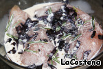 Базилик порезать, розмарин - добавить листочки и залить все сливками. Мариновать минут 7-10.