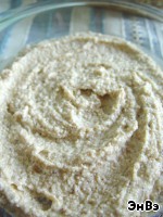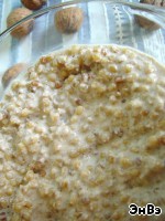 Если у вас осталась вода из-под пшеницы, разводим ею ореховую массу до пастообразного состояния. Если воды от пшеницы нет, используем кипяченую воду, добавляем по ложке