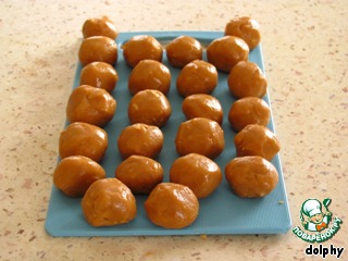 Выложите на противень, слегка приплющивая, на расстоянии примерно 1,5 см друг от друга. -