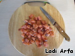 Филе рыбы нарежем кубиками, предварительно сняв кожу и убрав все кости.