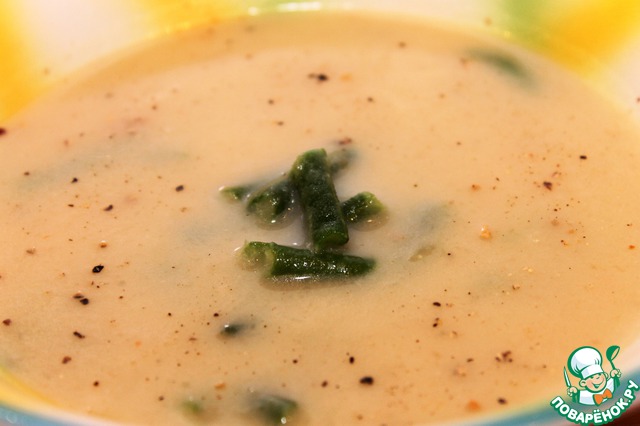 Солим и варим еще 10 минут. Затем снимаем кастрюлю с огня и взбиваем содержимое блендером (можно слить в миску жидкость для удобства, а потом ее вернуть в кастрюлю).