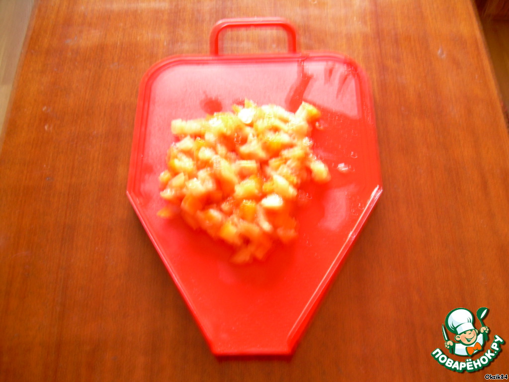 Все перемешиваем и добавляем мелко нарезанные помидоры