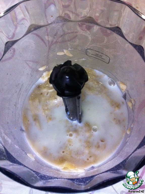 Взбить в блендере (размять вилкой) банан, добавить щепотку соли, молоко.
