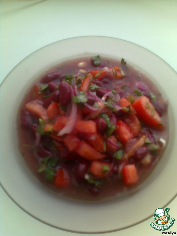 Основные продукты. Можно порцию увеличивать, на две баночки фасоли или три))) и остальное соответственно и по вкусу.