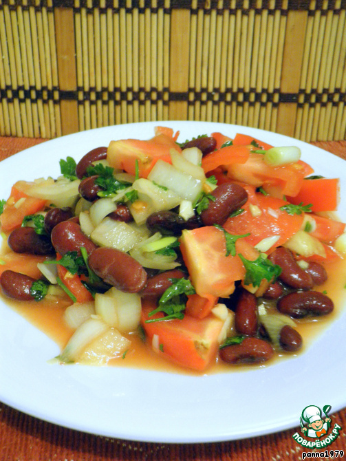 С детства не люблю фасоль в любом блюде и виде!!! Но когда у свекрови моей попробовала этот салат... Он стал одним из любимых!!! Нравится, что много соуса, что ароматный и остренький! Подходит идеально для питания в Пост! Даже в те дни, когда нельзя и масло употреблять, можно его не добавлять, вкус не сильно пострадает!