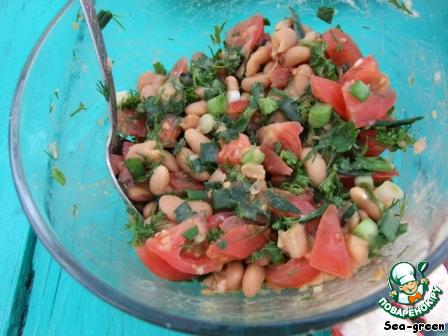 Только потом добавляем помидоры. Размешать все и добавить фасоль.