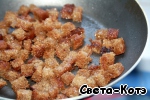Обжарить в большом количестве масла (так, чтобы каждый кусочек хорошенько пропитался) до хрустящей корочки, постоянно помешивая. На это уйдет около минуты.