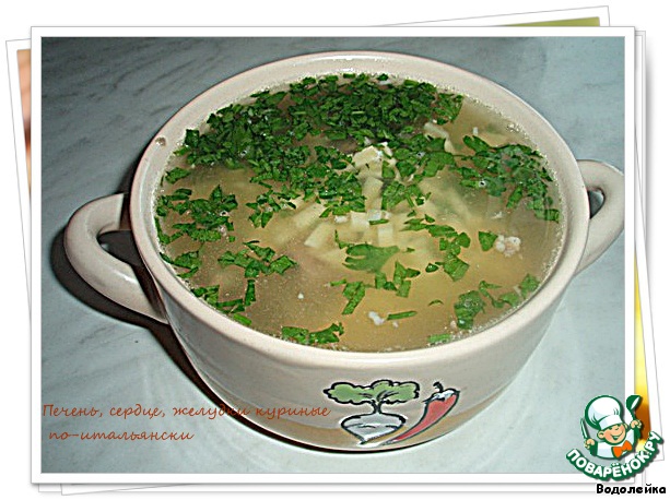 Рецепт «Печень, сердце, желудки куриные по-итальянски»: