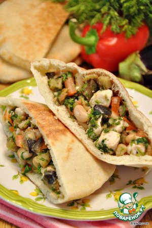 Рецепт «Пита с курицей, баклажанами и фасолью»: