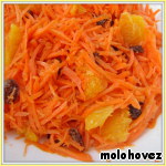 Дольки апельсинов, морковь и изюм смешать с соусом и поставить в холодильник настаиваться мин. на 15.
