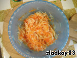 Отварить капусту и морковь до полуготовности в подсоленной воде, слить воду и хорошо отжать капусту с морковью, затем добавить одну столовую ложку растительного масла и посолить по вкусу. Перемешать.