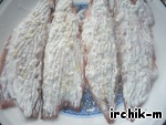 Аккуратно рыбку отделить от шкурки, удалить хребет и косточки, разрезать вдоль хребта.