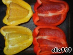 Выкладываем перцы в противень (форму), смазанный маслом, и накрываем его фольгой. Запекаем 25-30 минут при температуре 190 градусов, перцы должны стать мягкими.