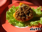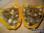 Наполняем половинки перцев начинкой из чечевицы. Начинку из чечевицы можно готовить заранее. Она может храниться в морозильнике до 6 месяцев (только в герметичной посуде).