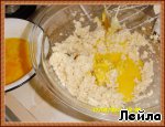 Яйца слегка взбить и вмешать яйца. Вымесить до однородности.