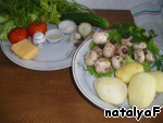 Ингредиенты для «Фаршированные шляпки шампиньонов с соевым сыром и с запеченной картошкой»: